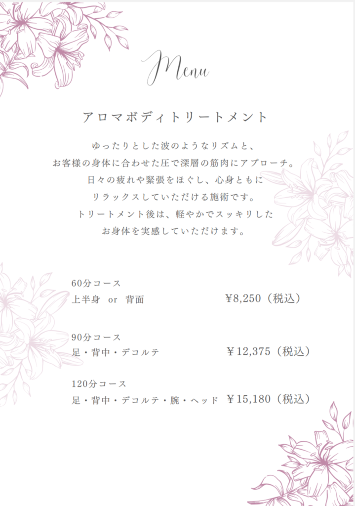 ボディメニューのご予約は